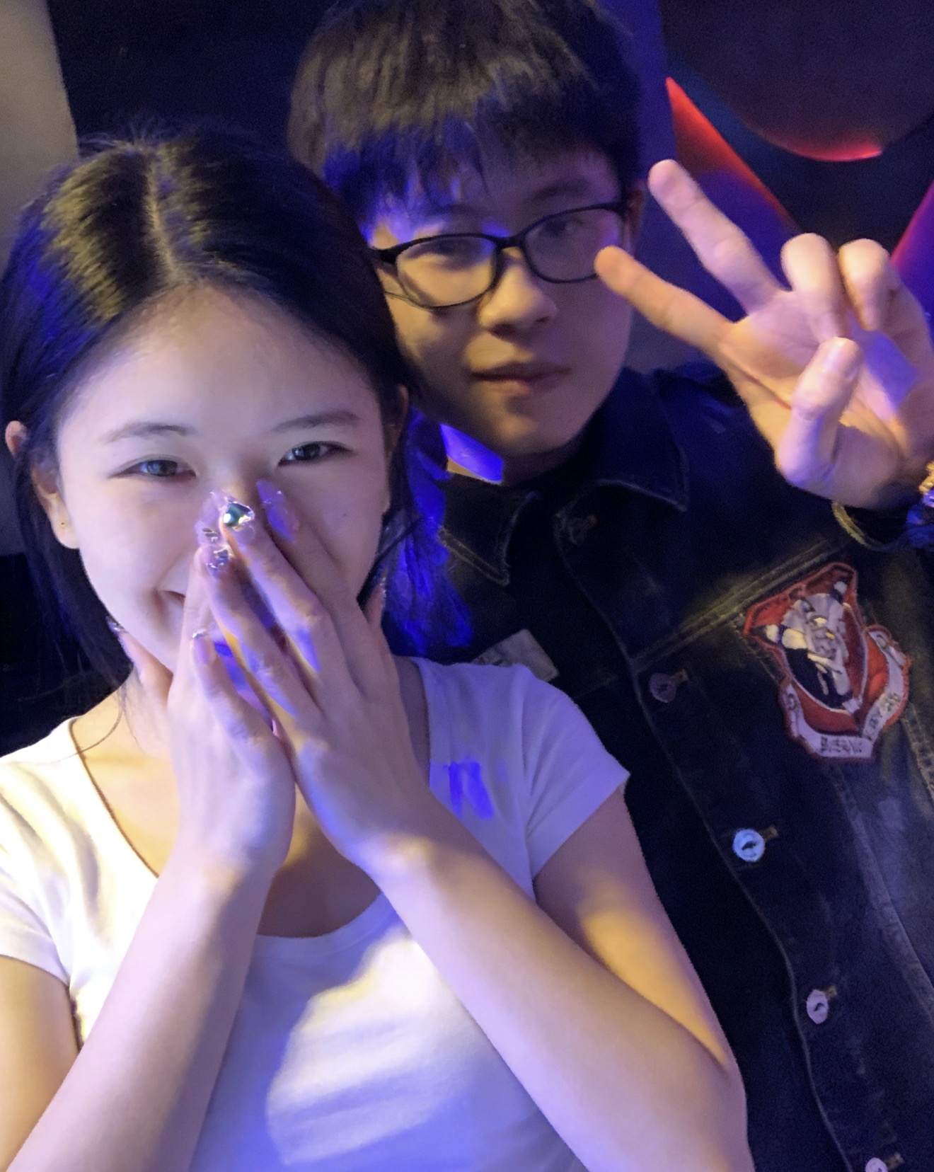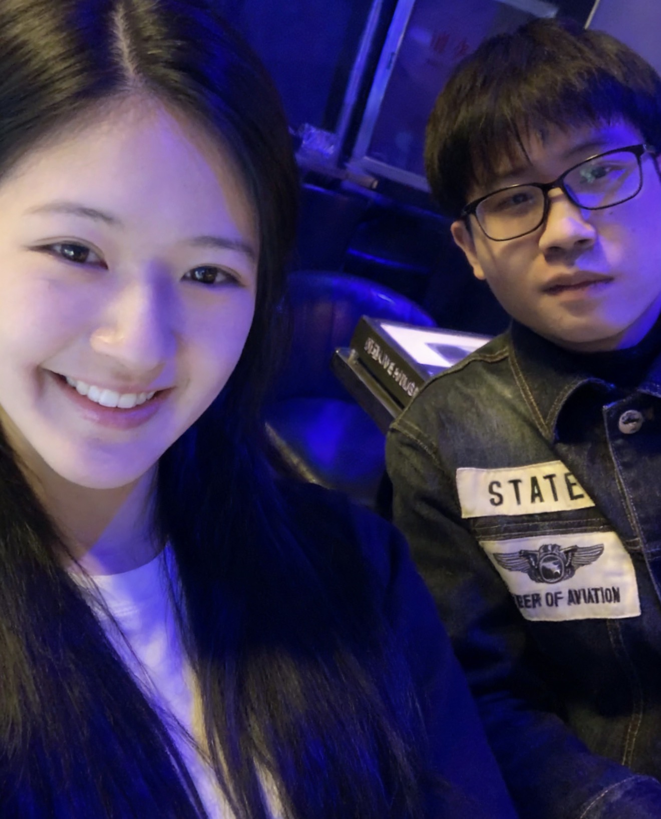 画面里,赵露思留着标志性的黑长直,笑容清甜又带着少女独有的羞涩;李心月身着牛仔外套,戴着黑框眼镜,青涩腼腆的模样尽显当时少年气质。在蓝紫色的KTV灯光下,两人头挨着头亲密合影,赵露思掩嘴娇笑,李心月则在身后随性比出剪刀手,互动间自然流露的亲昵感,满是初恋般的青涩氛围。